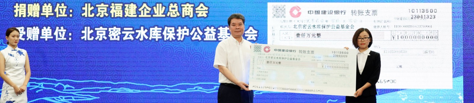陳春玖會長應(yīng)邀出席北京密云水庫保護公益基金會成立大會,鄭武執(zhí)行會長支票